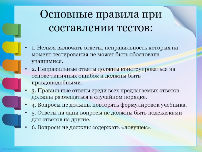 2. Неправильные ответы должны конструироваться на основе типичных ошибок и должны быть правдоподобными.