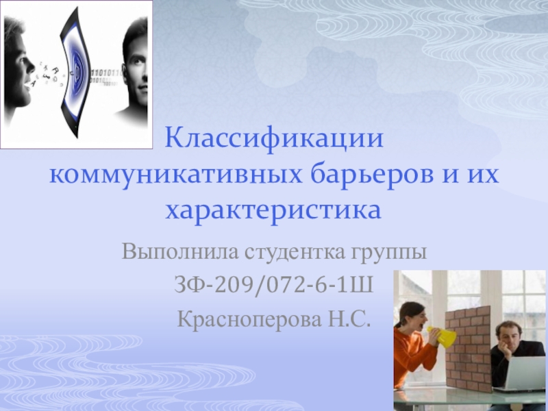 Слайд 1Классификации коммуникативных барьеров и их характеристика