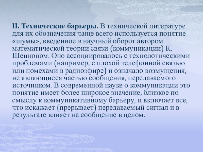 Слайд 3II. Технические барьеры. В технической литературе для их обозначения чаще всего