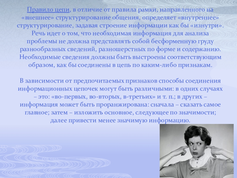 Слайд 11Правило цепи, в отличие от правила рамки, направленного на «внешнее» структурирование