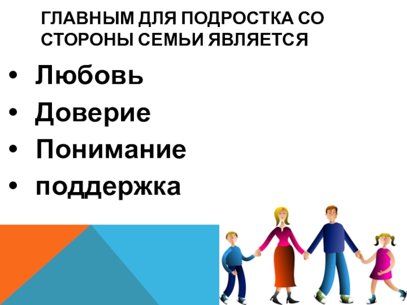 Слайд 14ГЛАВНЫМ ДЛЯ ПОДРОСТКА СО СТОРОНЫ СЕМЬИ ЯВЛЯЕТСЯ