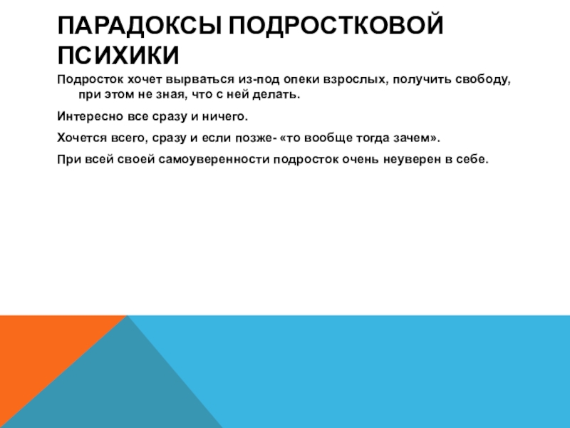 Слайд 7ПАРАДОКСЫ ПОДРОСТКОВОЙ ПСИХИКИ