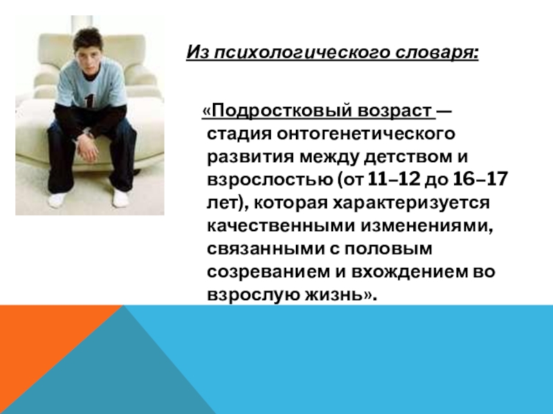 между детством и взрослостью (от 11–12 до 16–17 лет), которая характеризуется качественными изменениями, связанными с половым созреванием и вхождением во взрослую жизнь».