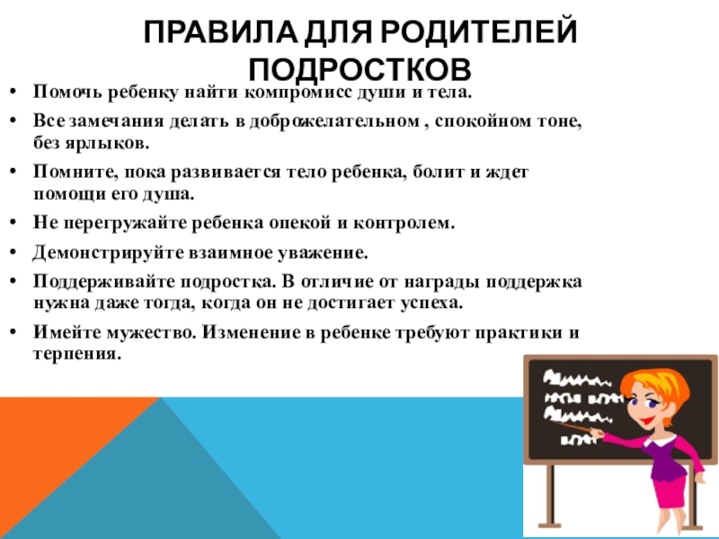 Слайд 15ПРАВИЛА ДЛЯ РОДИТЕЛЕЙ ПОДРОСТКОВ