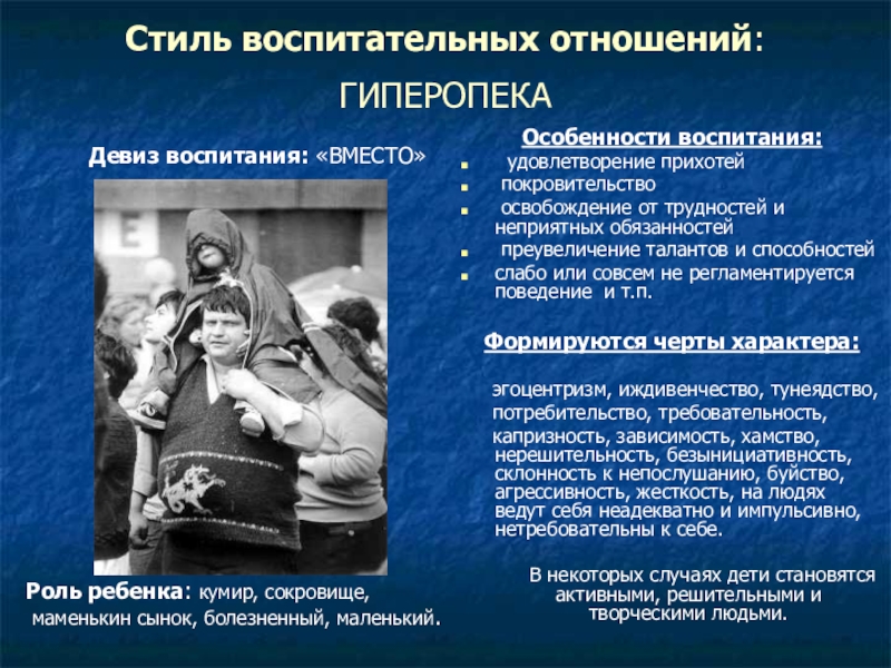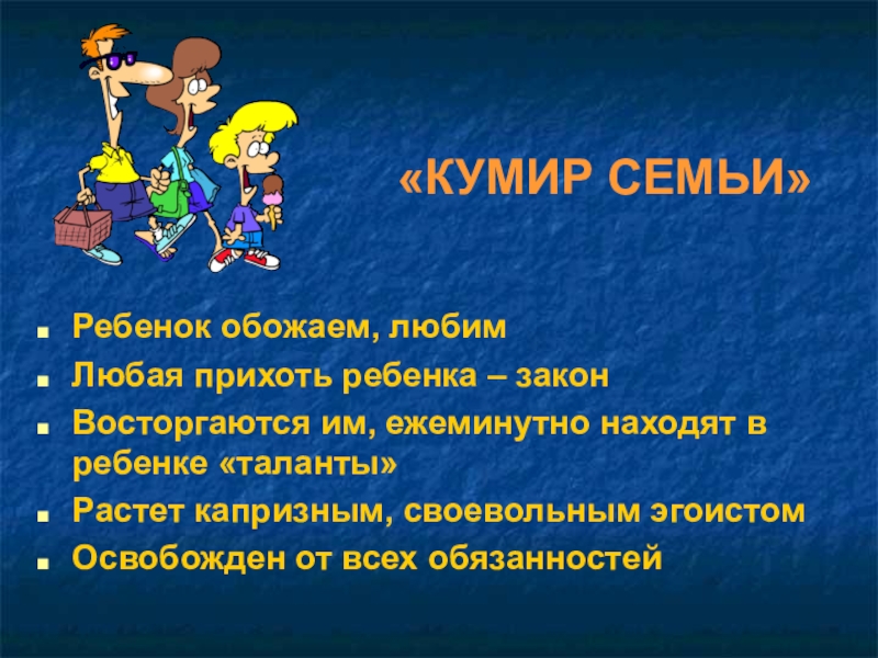 Роль ребенка: кумир, сокровище,