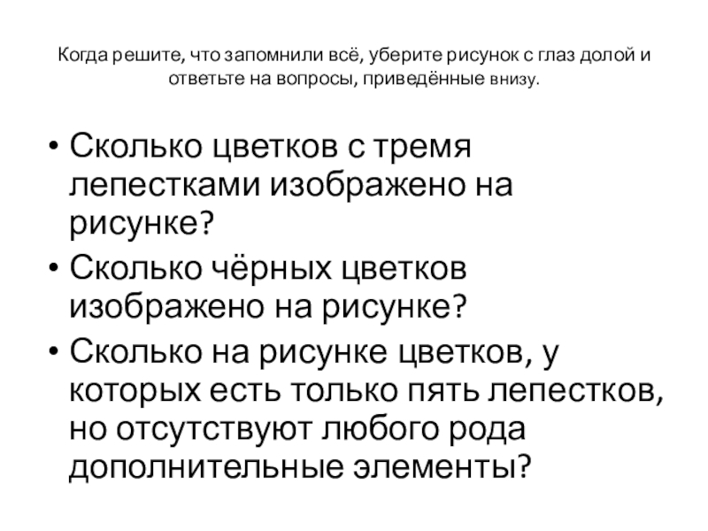Сколько на рисунке цветков, у которых есть только пять лепестков, но отсутствуют любого рода дополнительные элементы?