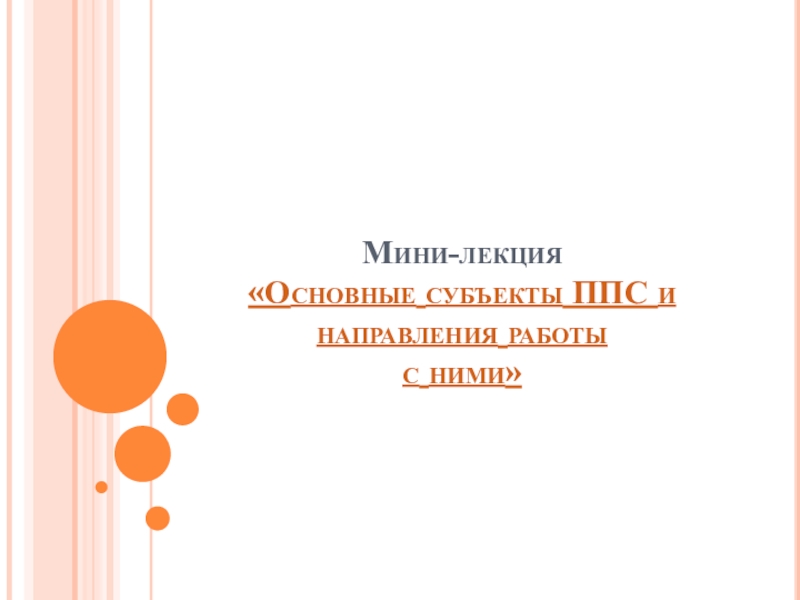 «Основные субъекты ППС и направления работы
