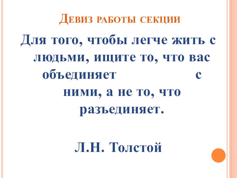 Слайд 7Девиз работы секции