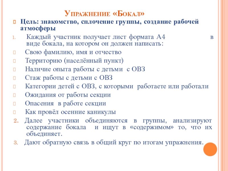 Слайд 6Упражнение «Бокал»