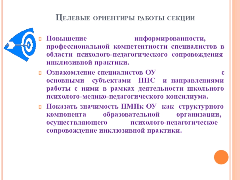 Слайд 4Целевые ориентиры работы секции