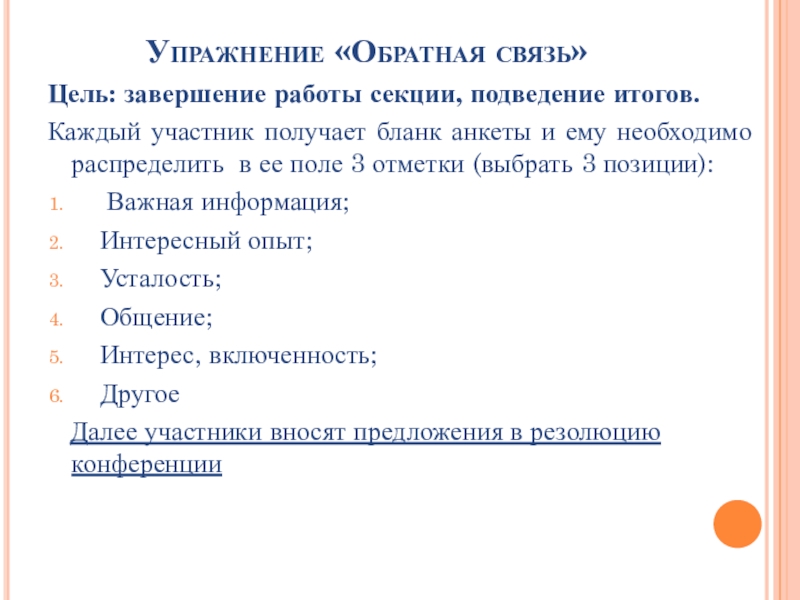 Слайд 15Упражнение «Обратная связь»