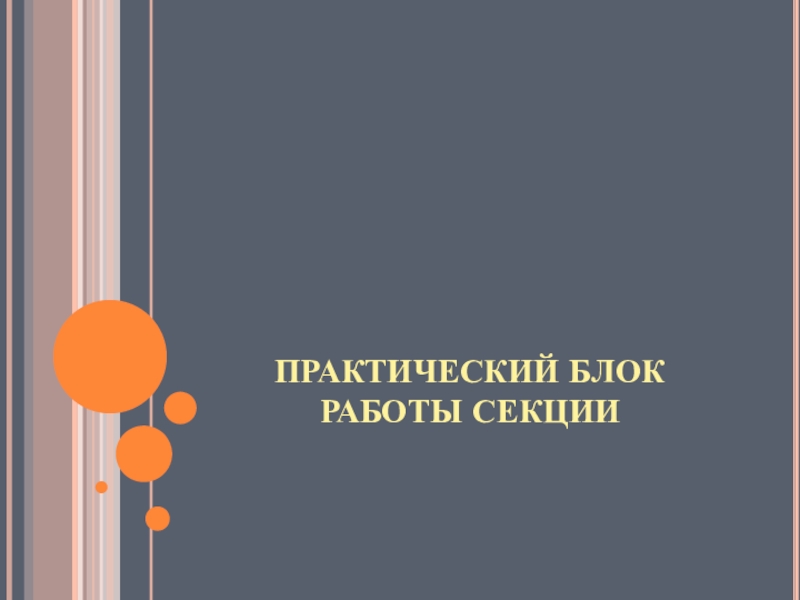 Слайд 5ПРАКТИЧЕСКИЙ БЛОК РАБОТЫ СЕКЦИИ