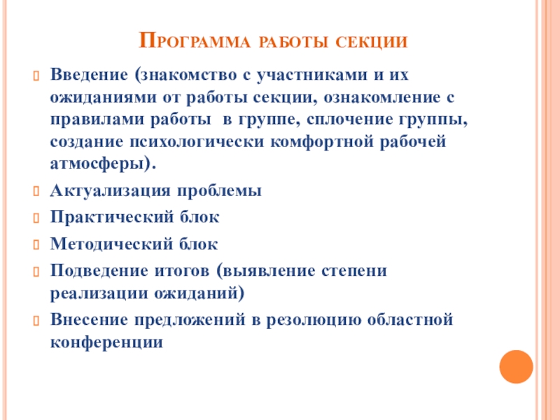 Слайд 2Программа работы секции