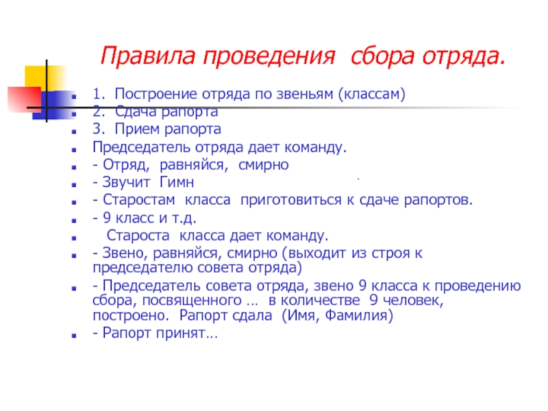 - отчетный отрядный сбор со сдачей рапорта проводить один раз в четверть