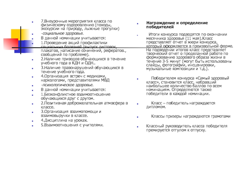 Победителем конкурса «Самый здоровый класс», становится класс, набравший наибольшее количество баллов по всем номинациям. Определяются также победители в каждой номинации.