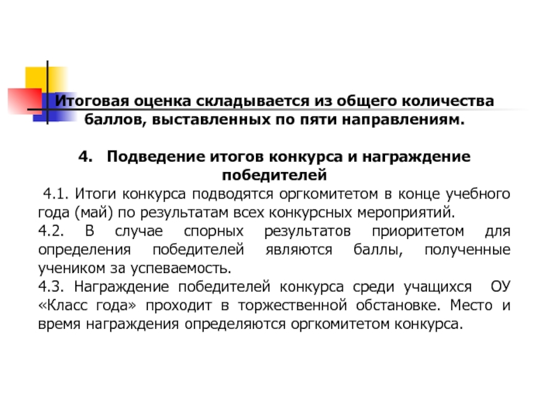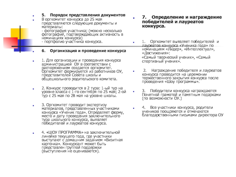 1. Оргкомитет выявляет победителей и лауреатов конкурса «Ученика года» по номинациям «Лидер», «Интеллектуал», «Достижения»: