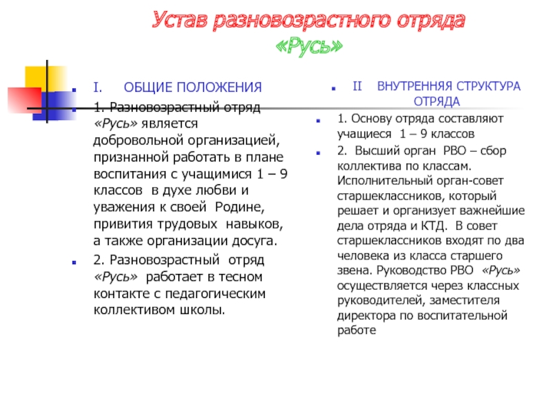 1. Основу отряда составляют учащиеся 1 – 9 классов