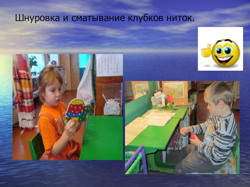Слайд 25Шнуровка и сматывание клубков ниток.