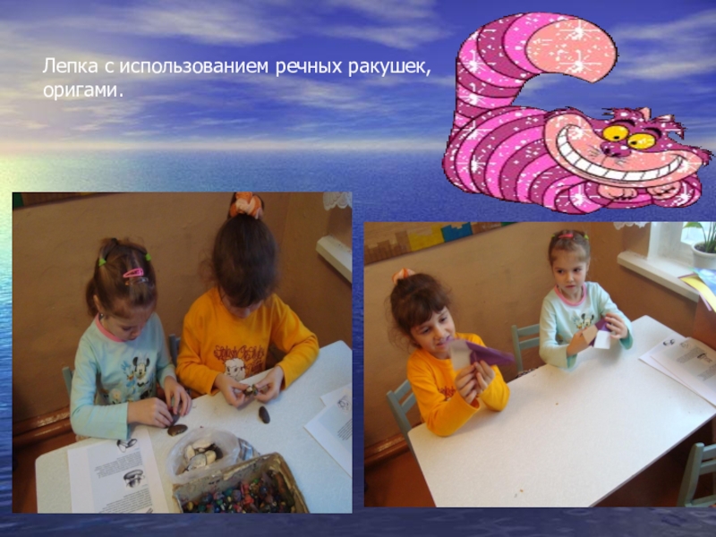 Слайд 11Лепка с использованием речных ракушек,