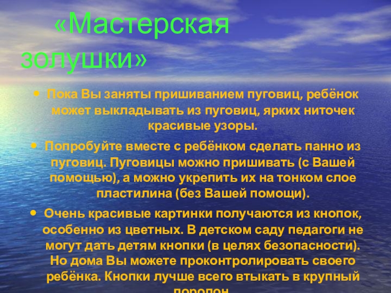 Слайд 22 «Мастерская золушки»