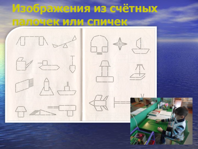 Слайд 23Изображения из счётных палочек или спичек