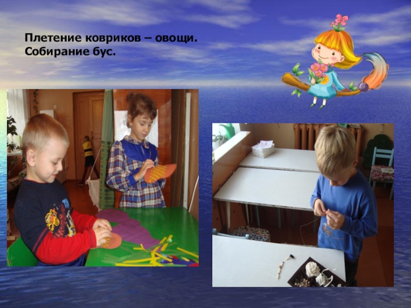 Слайд 14Плетение ковриков – овощи.