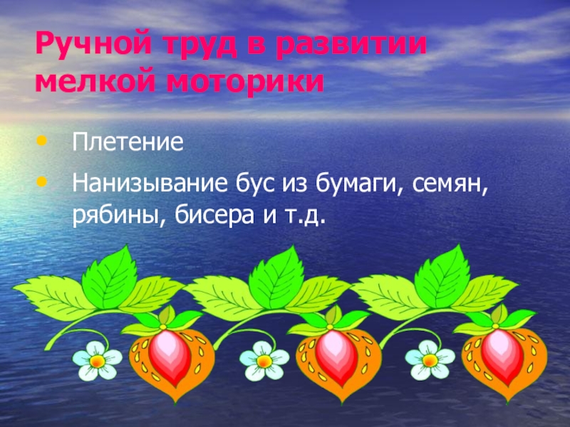 Слайд 13Ручной труд в развитии мелкой моторики
