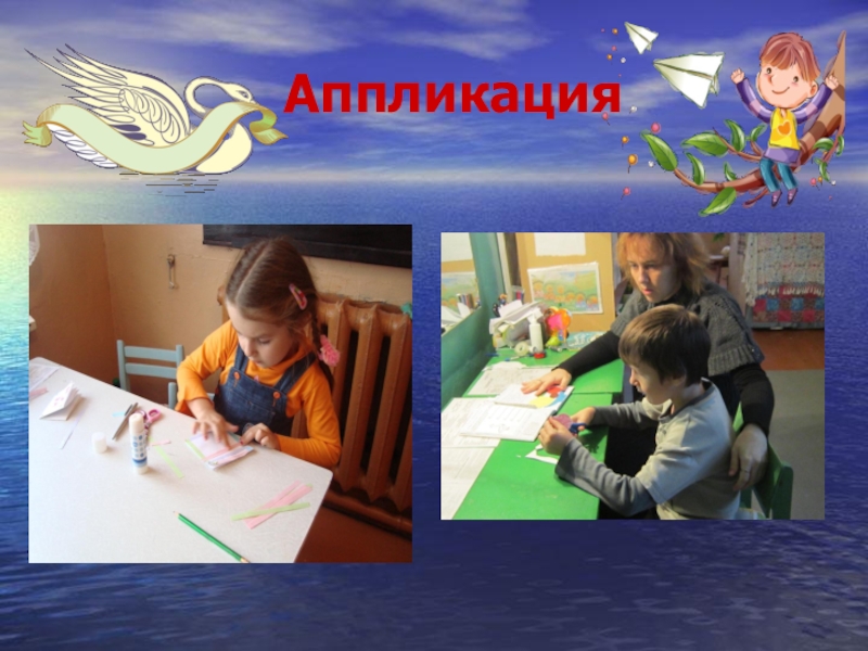 Аппликация (мозаичная, обрыванием, из палочек, листьев, ваты и др.).