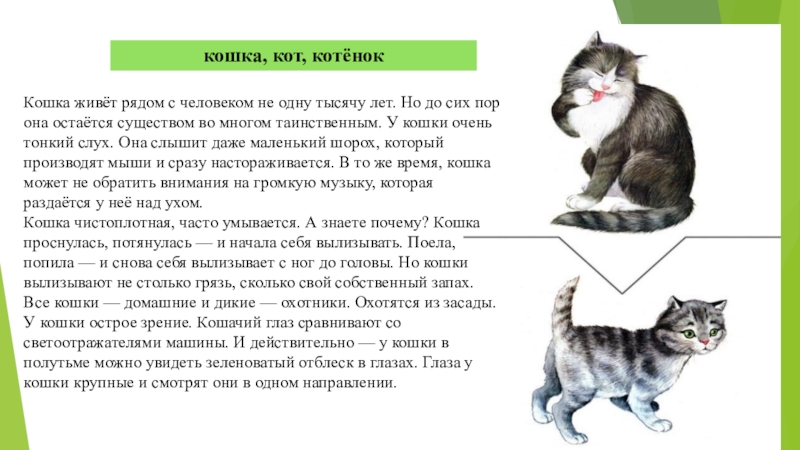 Кошка чистоплотная, часто умывается. А знаете почему? Кошка проснулась, потянулась — и начала себя вылизывать. Поела, попила — и снова себя вылизывает с ног до головы. Но кошки вылизывают не столько грязь, сколько свой собственный запах.