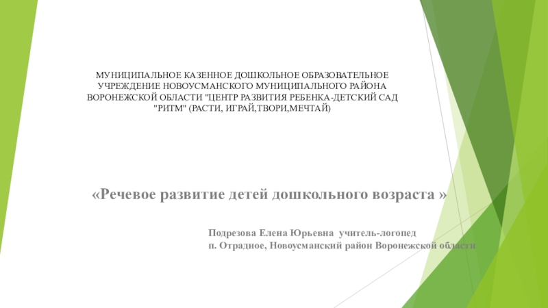 Слайд 1МУНИЦИПАЛЬНОЕ КАЗЕННОЕ ДОШКОЛЬНОЕ ОБРАЗОВАТЕЛЬНОЕ УЧРЕЖДЕНИЕ НОВОУСМАНСКОГО МУНИЦИПАЛЬНОГО РАЙОНА ВОРОНЕЖСКОЙ ОБЛАСТИ "ЦЕНТР