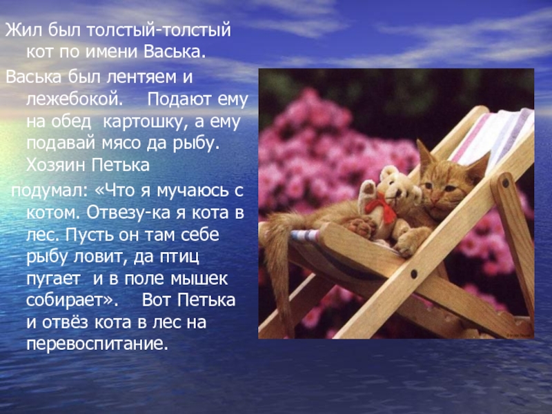 Слайд 2Жил был толстый-толстый кот по имени Васька.