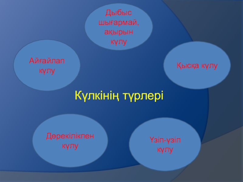 Үзіп-үзіп күлуДыбыс шығармай, ақырын күлу Айғайлап күлуҚысқа күлуДөрекілікпен күлуКүлкінің түрлері