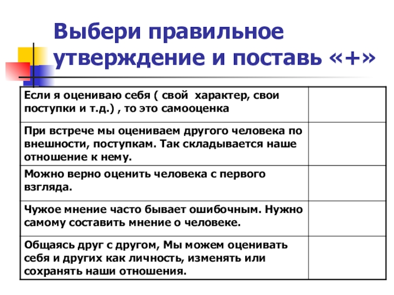 Слайд 13Выбери правильное утверждение и поставь «+»