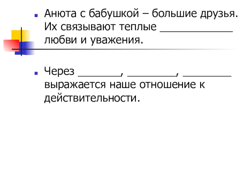Анюта с бабушкой – большие друзья. Их связывают теплые ____________ любви