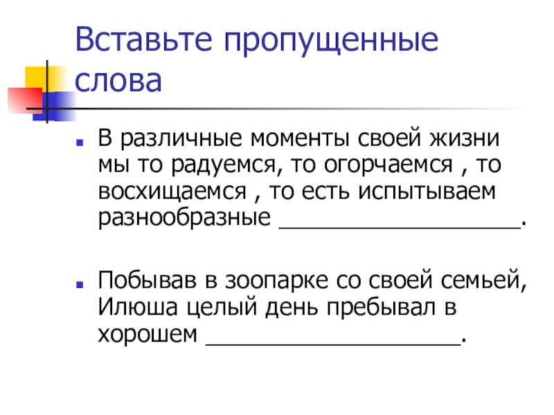 огорчаемся , то восхищаемся , то есть испытываем разнообразные __________________.