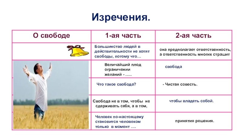 Свобода не в том, чтобы не сдерживать себя, а в том,