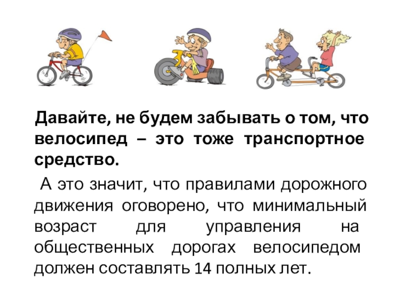 Слайд 2 Давайте, не будем забывать о том, что велосипед –