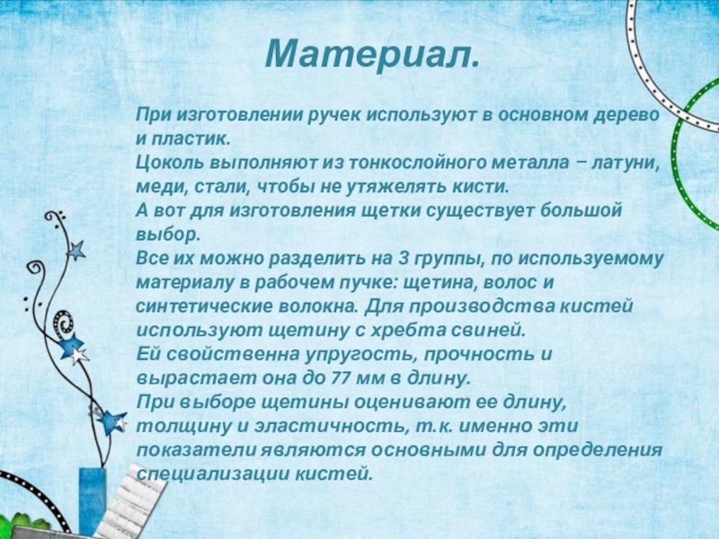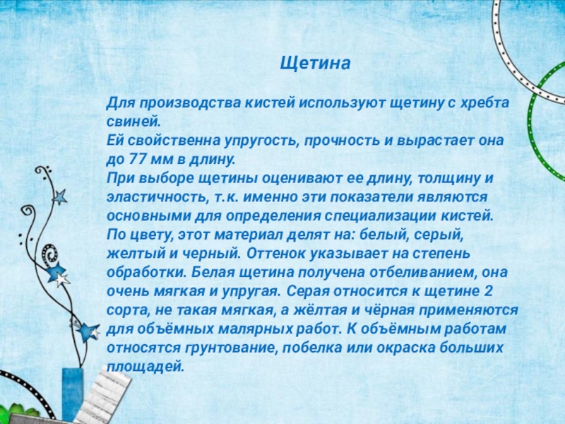 При выборе щетины оценивают ее длину, толщину и эластичность, т.к. именно эти показатели являются основными для определения специализации кистей.
