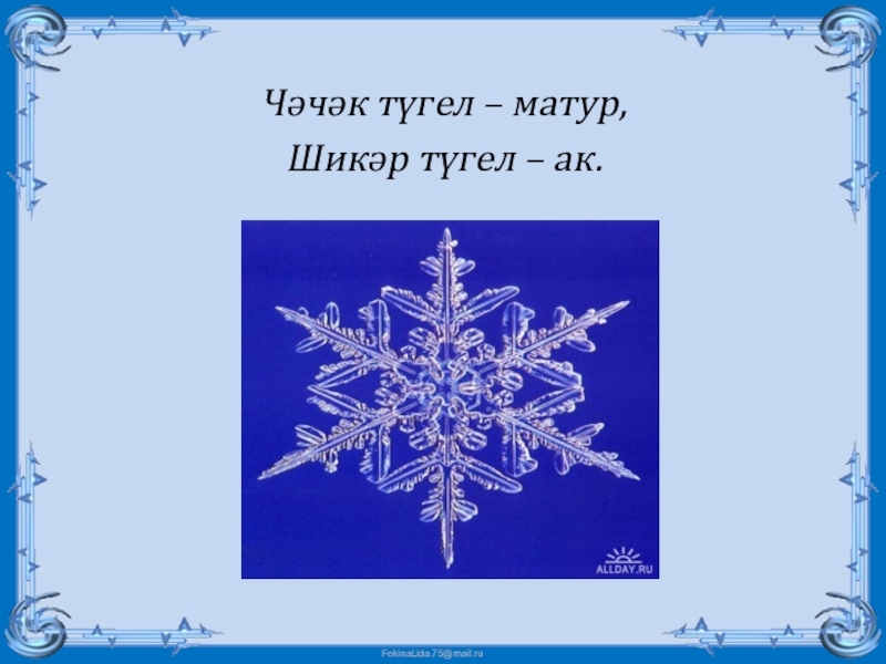 Чәчәк түгел – матур,Шикәр түгел – ак.