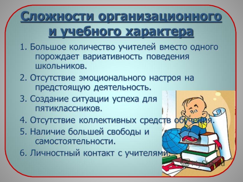 Презентация, доклад по теме Адаптация пятиклассников в среднем звене.