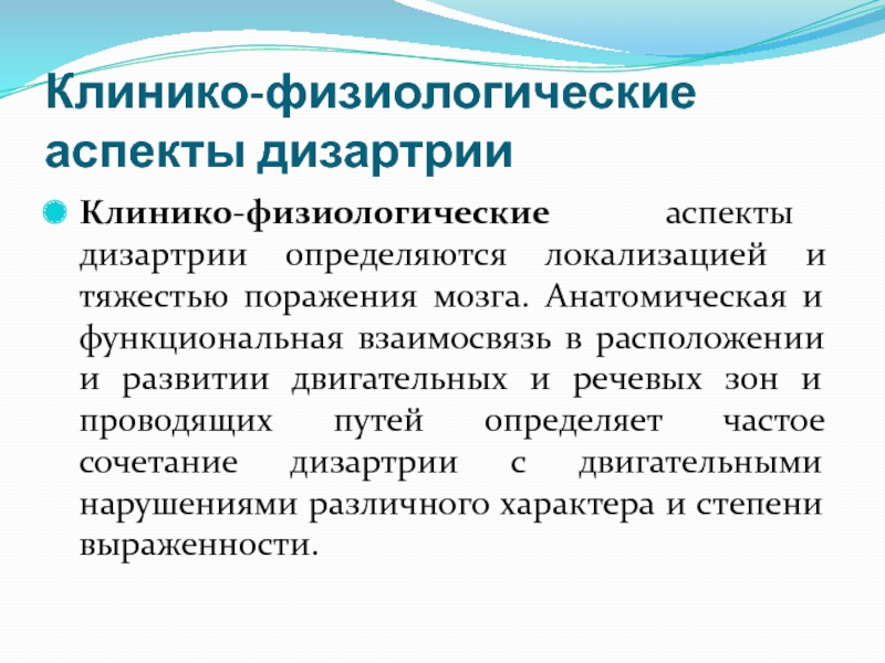Слайд 7Клинико-физиологические аспекты дизартрии
