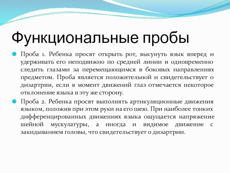Проба 1. Ребенка просят открыть рот, высунуть язык вперед