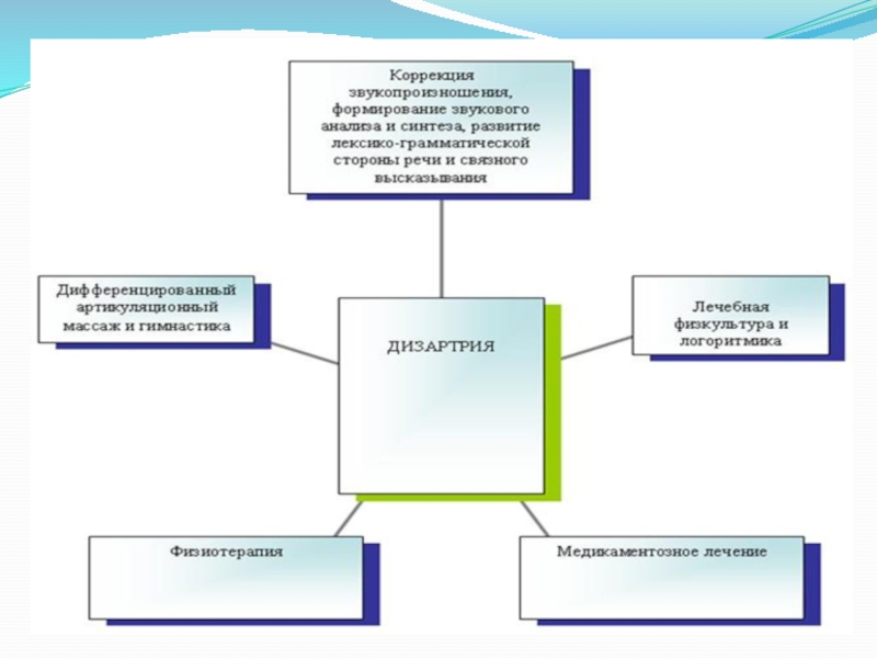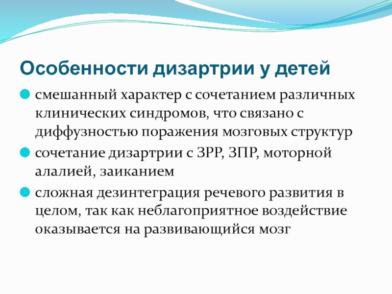 сочетание дизартрии с ЗРР, ЗПР, моторной алалией, заиканием