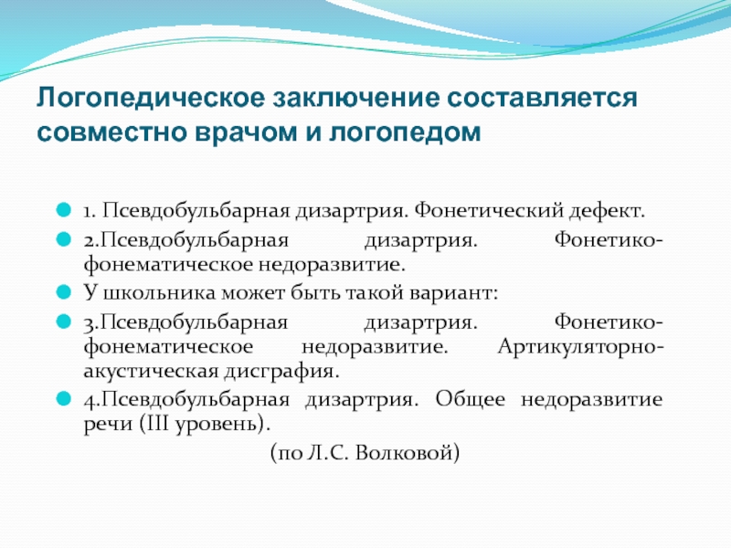 Слайд 24Логопедическое заключение составляется совместно врачом и логопедом