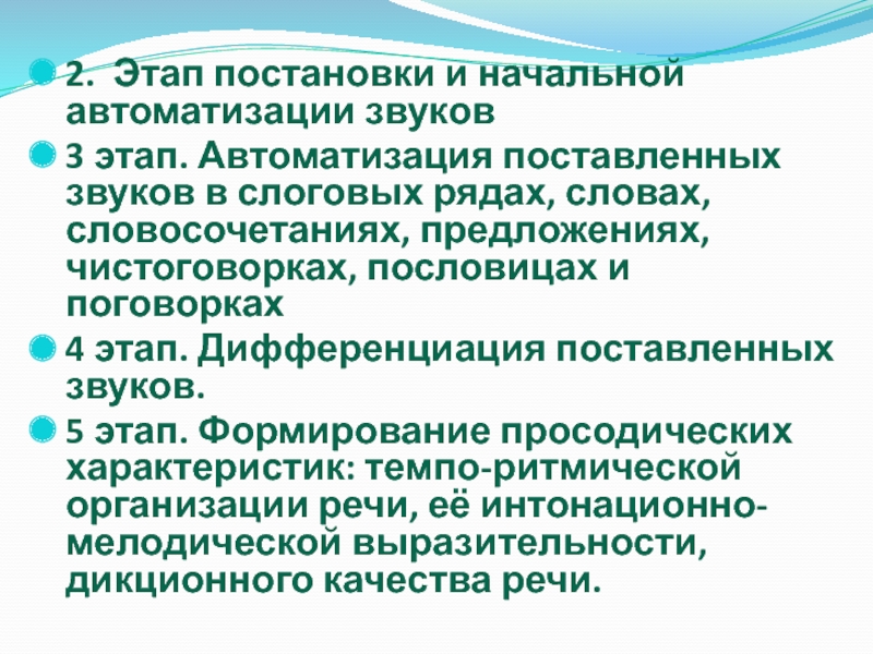 Слайд 262. Этап постановки и начальной автоматизации звуков