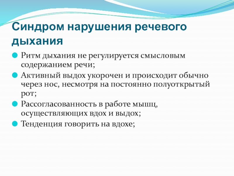 выдох укорочен и происходит обычно через нос, несмотря на постоянно полуоткрытый рот;
