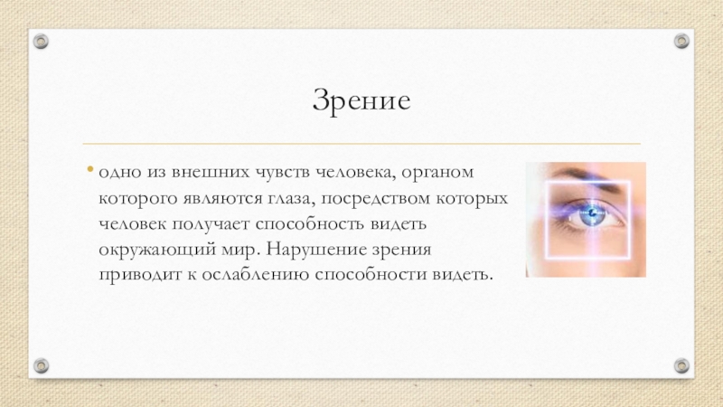 человек получает способность видеть окружающий мир. Нарушение зрения приводит к ослаблению способности видеть.