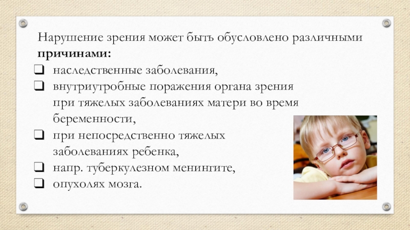 Слайд 6Нарушение зрения может быть обусловлено различными причинами: