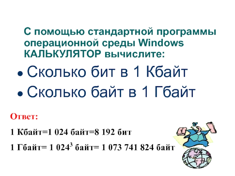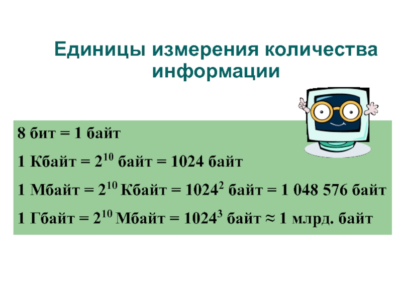 1 Гбайт= 1 0243 байт= 1 073 741 824 байт