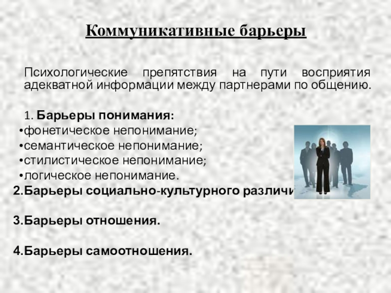 Психологические препятствия на пути восприятия адекватной информации между партнерами по